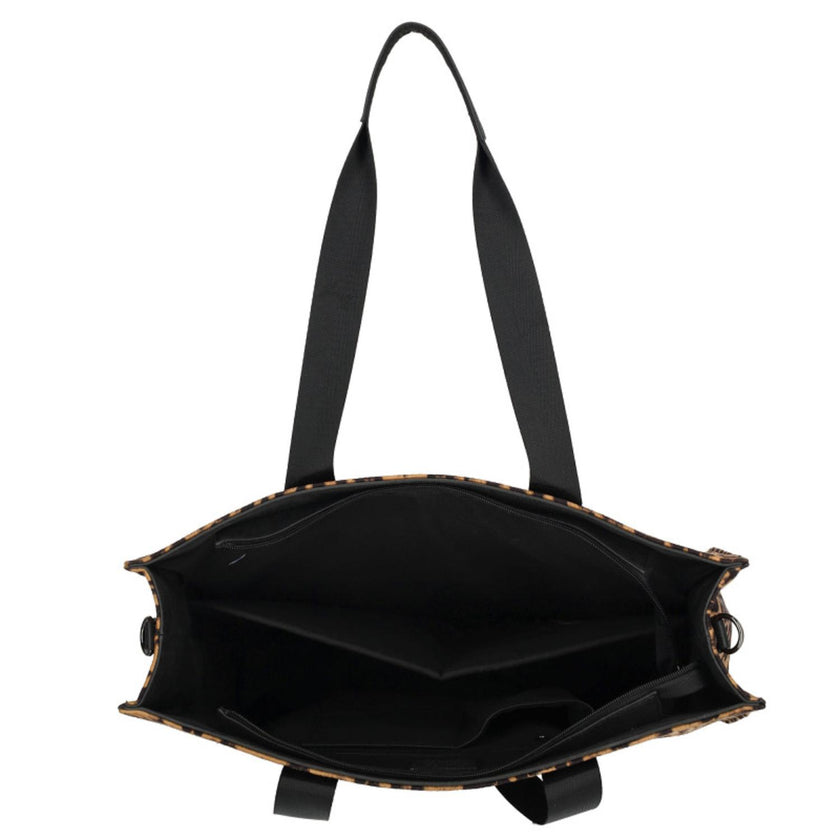 Loop jij binnenkort de deur uit met deze eyecatcher? De laptoptas Jill van Enrico Benetti heeft een gave panterprint! De tas heeft een ruim formaat met een 17 inch laptopvak. Binnenin de tas vind je diverse vakjes om je kleinere items in op te bergen. Je draagt de tas fijn met de 2 stevige hengsels of met de lange verstelbare band. Wordt dit jouw nieuwe laptoptas?